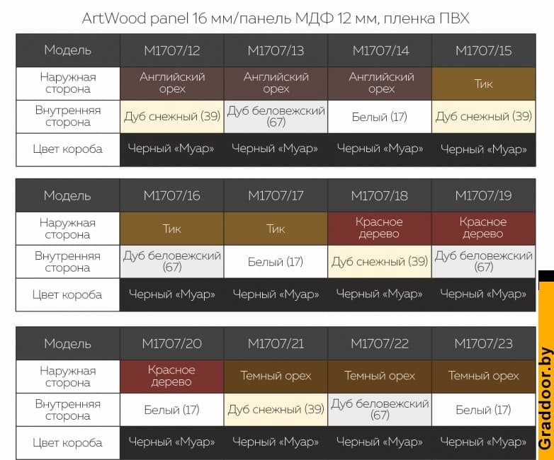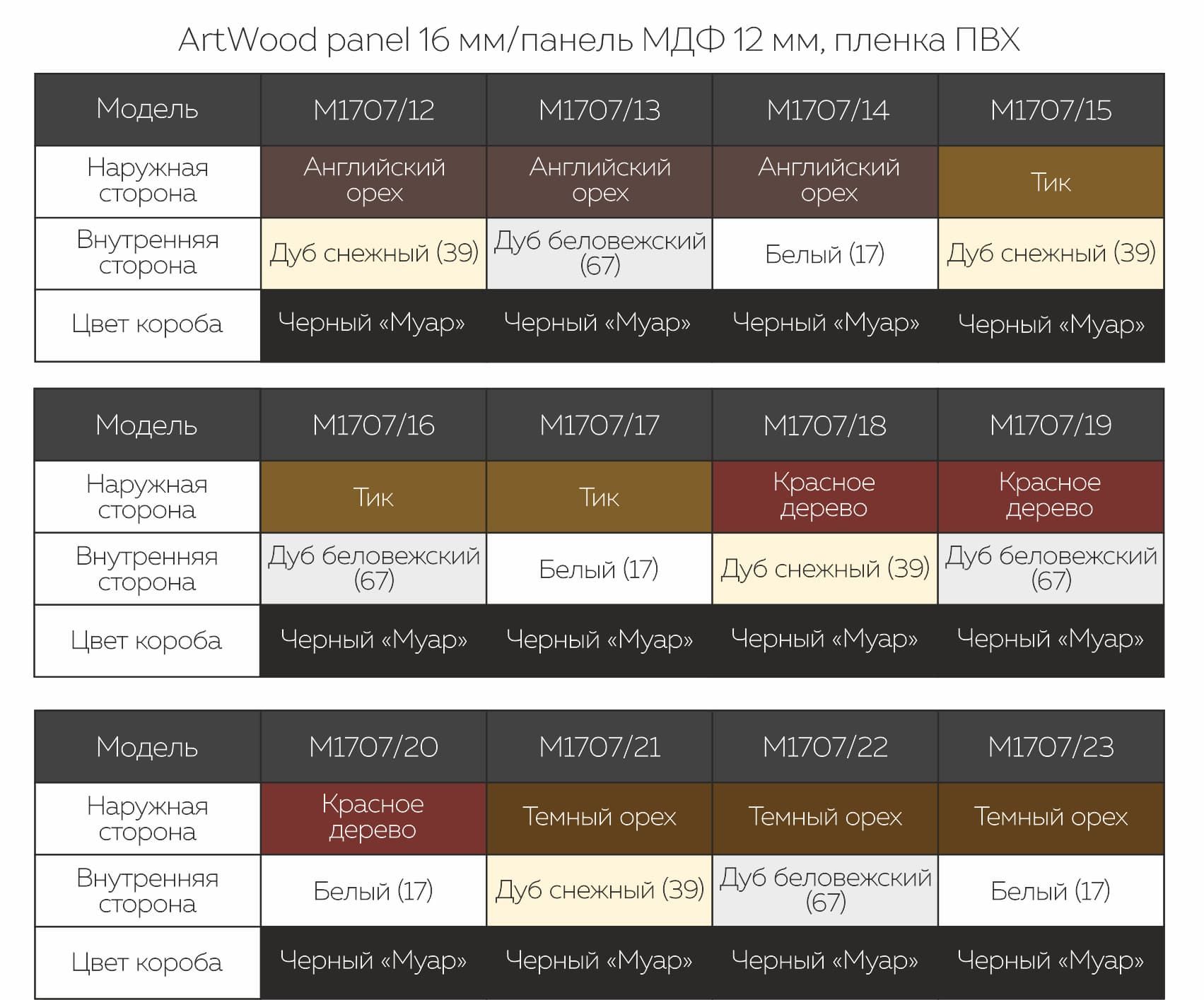 | ОТДЕЛКА СНАРУЖИ | Фрезерованная ArtWood panel, 16 мм, цвет «Английский орех» | Фрезерованная ArtWood panel, 16 мм, цвет «Английский орех» | Фрезерованная ArtWood panel, 16 мм, цвет «Английский орех» |