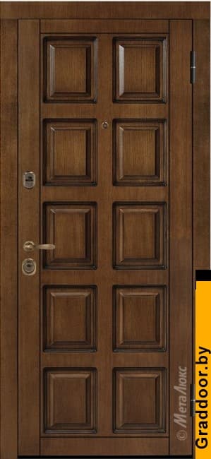 | ОСОБЕННОСТИ КОНСТРУКЦИИ | • Дополнительную жесткость конструкции придает особое расположение ребер (2 вертикальных, 2 горизонтальных) • Усиление зоны петель легированным металлом квадратного сечения • Усиление замковой части металлическим карманом • Эксцентрик (обеспечивает плотное прилегание дверного полотна к коробу) • Противосъемные ригели, диаметром 14 мм (2 шт.), исключают вероятность взлома путем среза петель • Особый профиль полотна (края полотна завальцованы, что придает дополнительную жесткость и исключает возможность вскрытия двери силовым отжимом) • Безмолдинговая система крепления внутренней панели позволяет добиться безупречного внешнего вида изделия. Особая конфигурация профиля полотна при необходимости дает возможность осуществить замену внутренней панели |