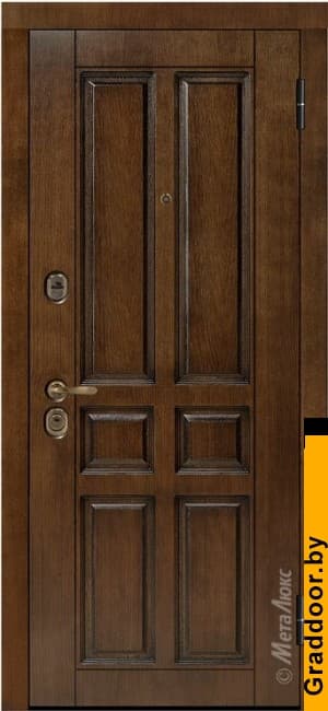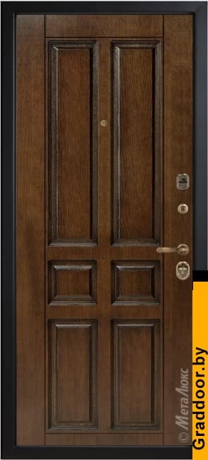| ОСОБЕННОСТИ КОНСТРУКЦИИ | • Дополнительную жесткость конструкции придает особое расположение ребер (2 вертикальных, 2 горизонтальных) • Усиление зоны петель легированным металлом квадратного сечения • Усиление замковой части металлическим карманом • Эксцентрик (обеспечивает плотное прилегание дверного полотна к коробу) • Противосъемные ригели, диаметром 14 мм (2 шт.), исключают вероятность взлома путем среза петель • Особый профиль полотна (края полотна завальцованы, что придает дополнительную жесткость и исключает возможность вскрытия двери силовым отжимом) • Безмолдинговая система крепления внутренней панели позволяет добиться безупречного внешнего вида изделия. Особая конфигурация профиля полотна при необходимости дает возможность осуществить замену внутренней панели |