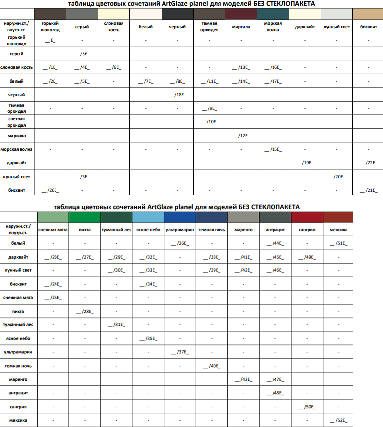 | Цвет | шоколад, Серый, Слоновая кость, Белый, Черный, Светлая орхидея, Темная орхидея, Марсала, Морская волна, дарквайт, Лунный свет, Бисквит, Снежная мята, Пихта, Туманный лес, Ясное небо, Ультрамарин, Темная ночь, Маренго, Антрацит, Сангрия, Мексика |