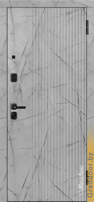 | ОСОБЕННОСТИ КОНСТРУКЦИИ | • Дополнительную жесткость конструкции придает уникальное расположение ребер (2 вертикальных, 2 горизонтальных) • Усиленные петли на подшипниках • Усиление зоны петель легированным металлом квадратного сечения • Усиление замковой части металлическим карманом • Регулятор притвора (обеспечивает плотное прилегание дверного полотна к коробу) |