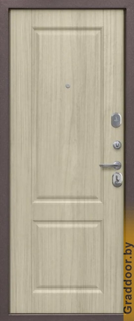 Дополнительный замок: сувальдный Zirh Kilit, диаметр ригелей: 16 мм, вылет ригелей: 35 мм. Декоративные накладки на оба замка.