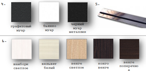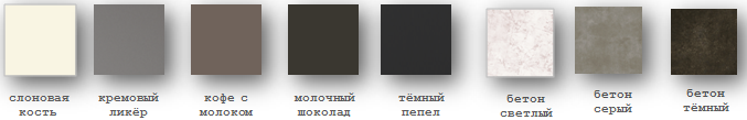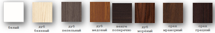 | Цвет | каштан темный, Венге, Орех лесной, Белый, Венге светлый, Венге, венге полосатый, дуб беленый, Дуб пепельный, Дуб медовый, Дуб мореный, грецкий орех, слоновая кость, дуб кремовый, Дуб шоколад, Бетон серый, Бетон белый, бетон темный |