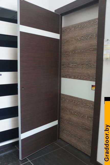 - При изготовлении дверей, используется специальный двухкомпонентный клей, который не имеет точки плавления вовсе. То есть, в отличие от большинства производителей дверей, которые используют клей-расплав (температура плавления от 80 градусов), в этих дверях исключена отклейка или коробление пленки.