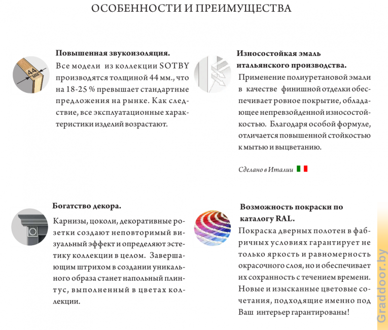 Отличительной чертой данного покрытия является устойчивость к пожелтению, а это значит, что цвет двери не измениться длительное время.