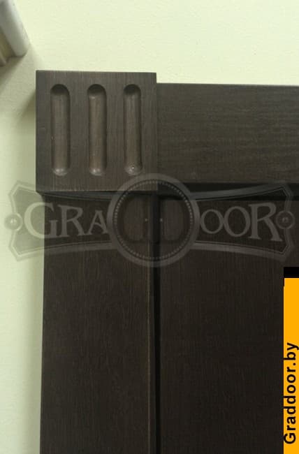 В комлекте: полотно, П-образная коробка с уплотнителем, наличники с двух сторон.