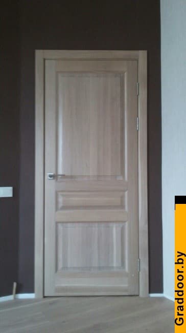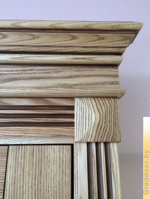 Данная модель может быть представлена в индивидуальном цвете и оттенке, с различным видом патины. Такие двери придутся по вкусу покупателям, которые предпочитают и ищут двери в классическом стиле. Двери обладают высокой твердостью поверхности, экологичностью, ударопрочностью, долговечностью и отличным качеством. Собираются при помощи стяжных винтов и комплектуются уплотнителем фирмы Schlegel. При изготовлении дверей нами затрагивается весь технологический процесс от закупки пиломатериала, распила и сушки до покраски дверного блока. Мы используем только массив ценных пород древесины без пороков и дефектов. Двери могут быть выполнены из массива сосны, ольхи, дуба и ясеня. Филенки изготавливаются при помощи ламелей из древесины, а внутри используется Влагостойкая плита, что дает идеальную геометрию. Для склейки древесины мы используем немецкий клей группы D4. Покраска дверей происходит в разобранном виде, что в дальнейшем не приводит к образованию белых полос нежели при покраске целиком.