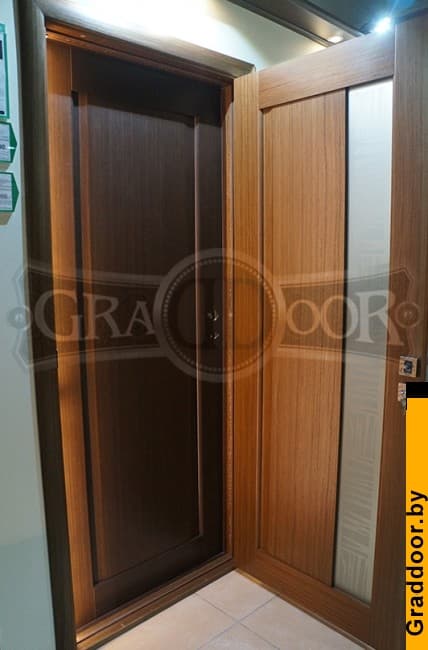 Двери подетальной сборки. Каркас полотна изготавливается из сосновых брусков с применением стабилизирующей МДФ подложки. Отделка Шпон с трехслойной отделкой полиуретановым лаком Becker Acroma (Швеция) с промежуточной шлифовкой.
