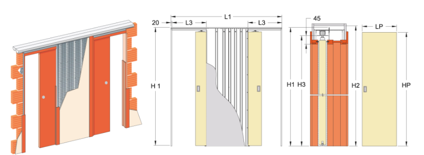 Пенал для кирпичной стены и для стены из гипсокартона 200 мм